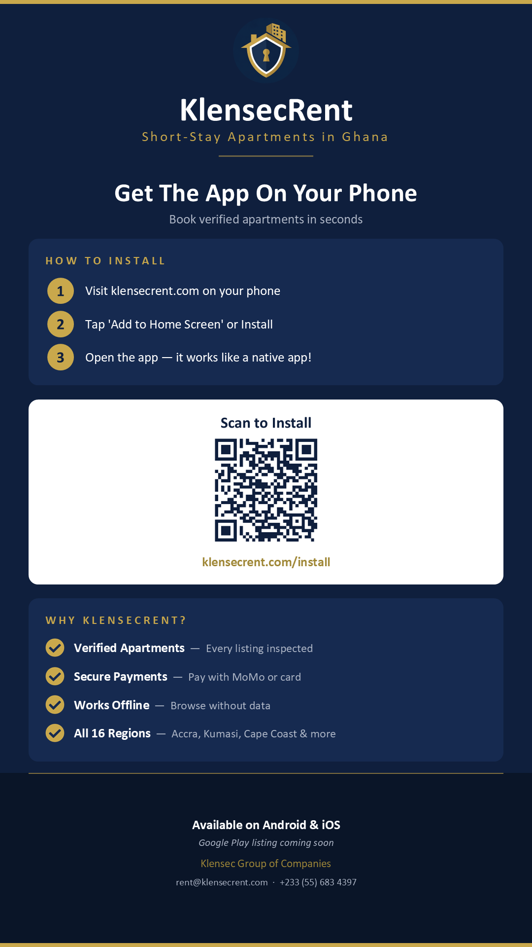 The KlensecRent App Is Here — Scan, Install, and Book Your Next Stay in Ghana